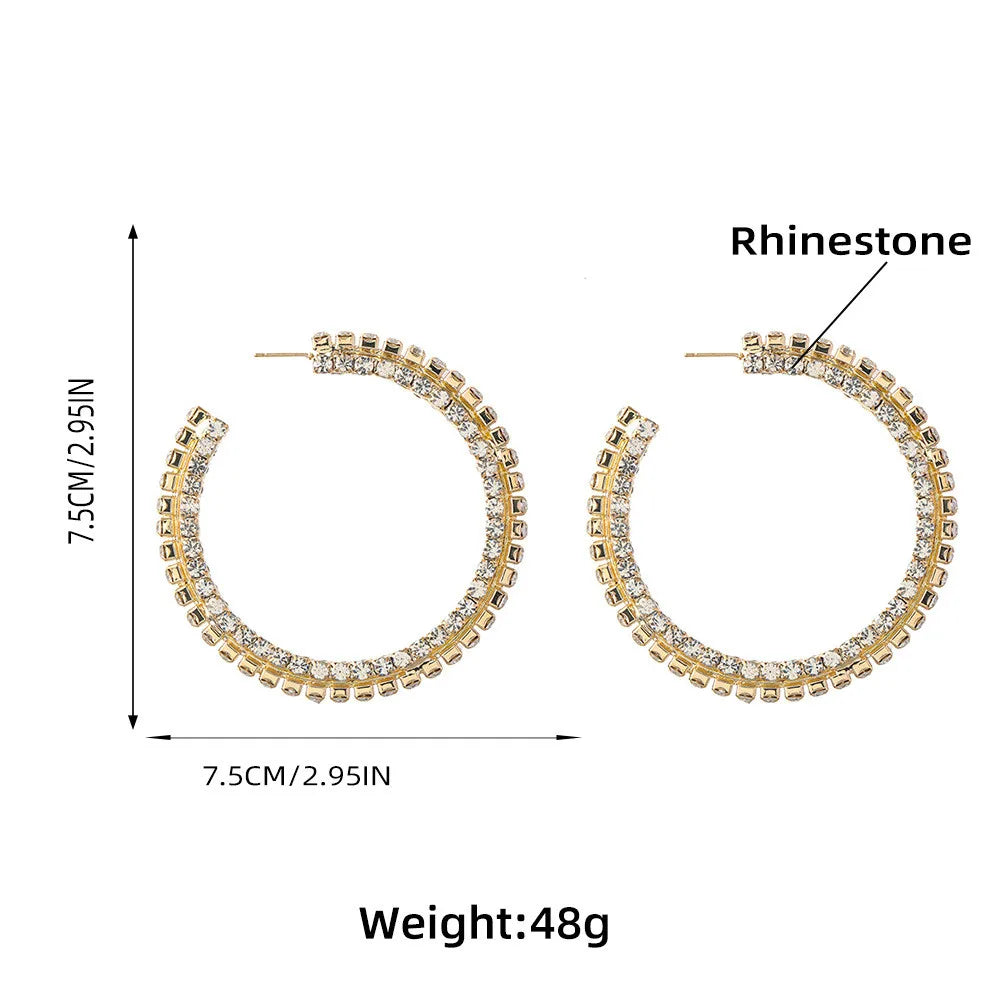 Crystal - Stacked Crystal Big Round Hoop Earrings
