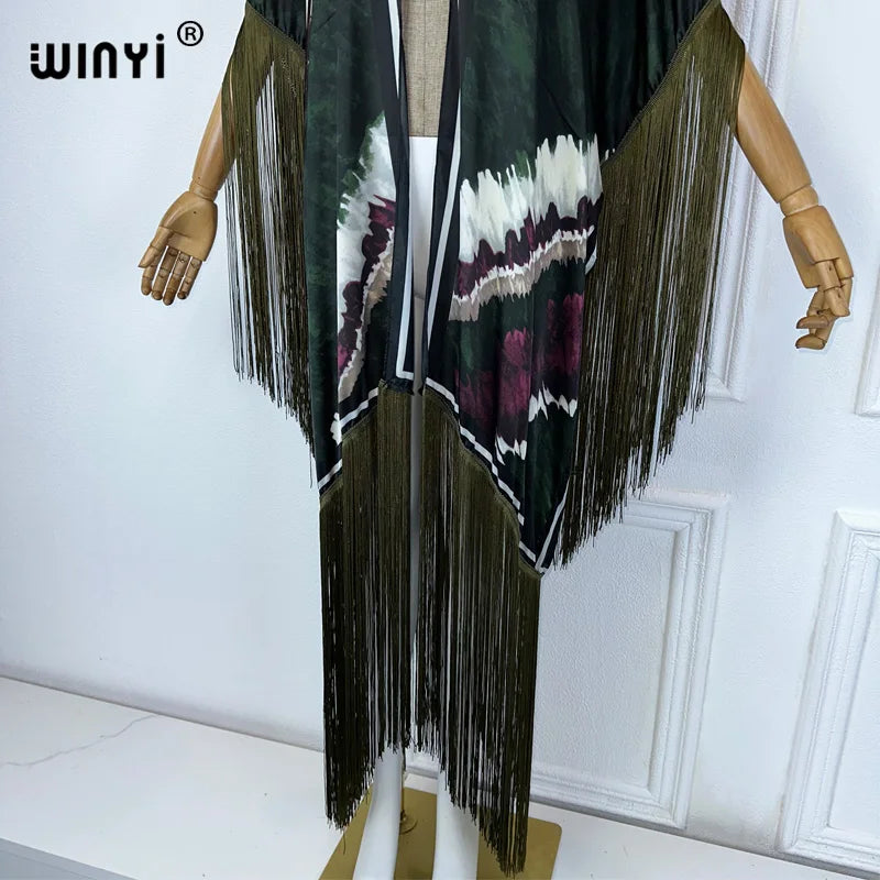 Jetsetter - Elegant Kimono Maxi with Fringes
